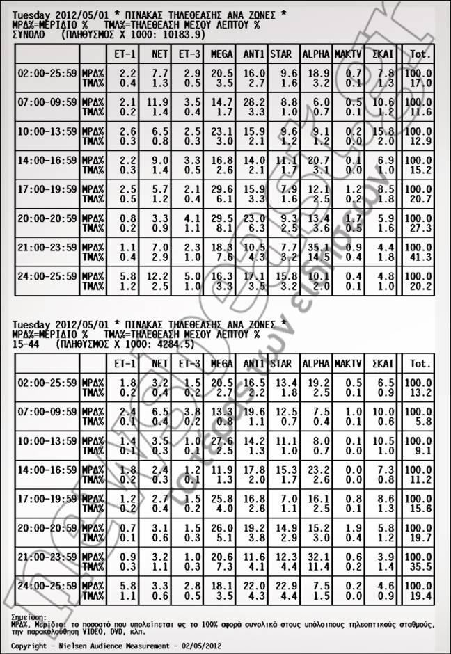 Με 26% κέρδισε το δελτίο του Mega στο κοινό 15-44. Ακολούθησαν ΑΝΤ1 με 19,2% και STAR με 14,9%.