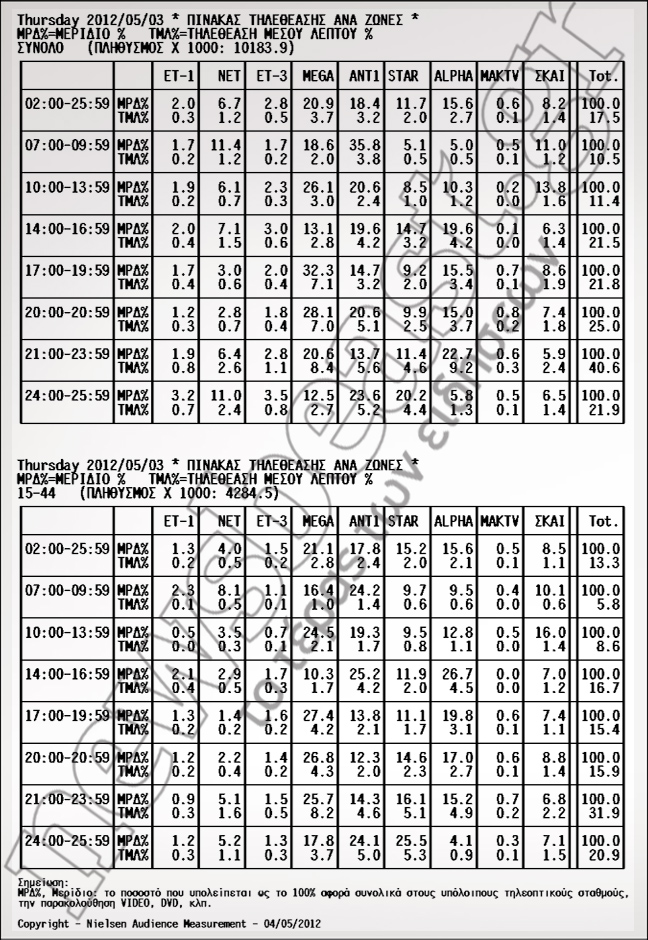 Δείτε πώς διαμορφώθηκε το τηλεοπτικό τοπίο των αγαπημένων σας προγραμμάτων την Πέμπτη 3 Μαΐου: