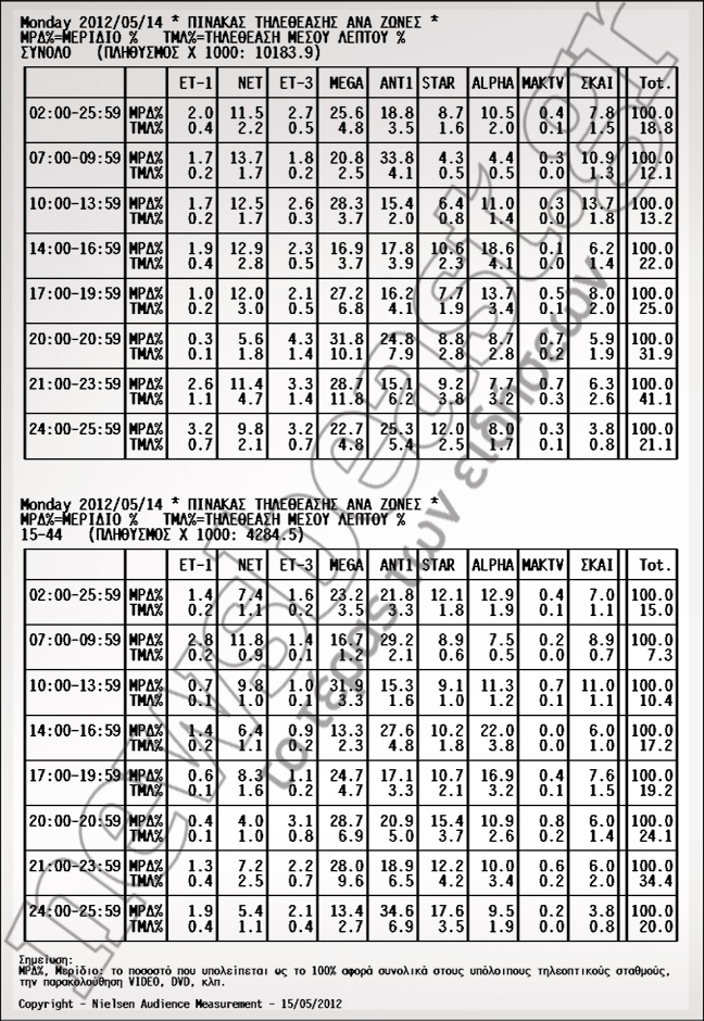 Με 31,8% το δελτίο του Mega βγήκε πρώτο στην προτίμηση των τηλεθεατών. Στη δεύτερη θέση της «μάχης» της τηλεθέασης ήρθε ο ΑΝΤ1 με 24,8% και στην τρίτη το STAR με 8,8%.