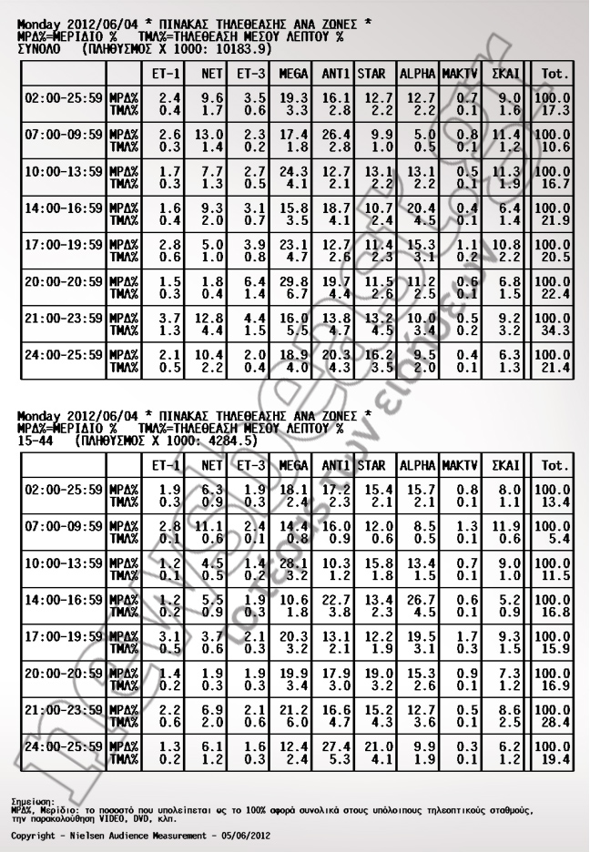 Με 29,8% βγήκε πρώτο το δελτίο του Mega. Ακολούθησαν ΑΝΤ1 με 19,7% και STAR με11,5%.