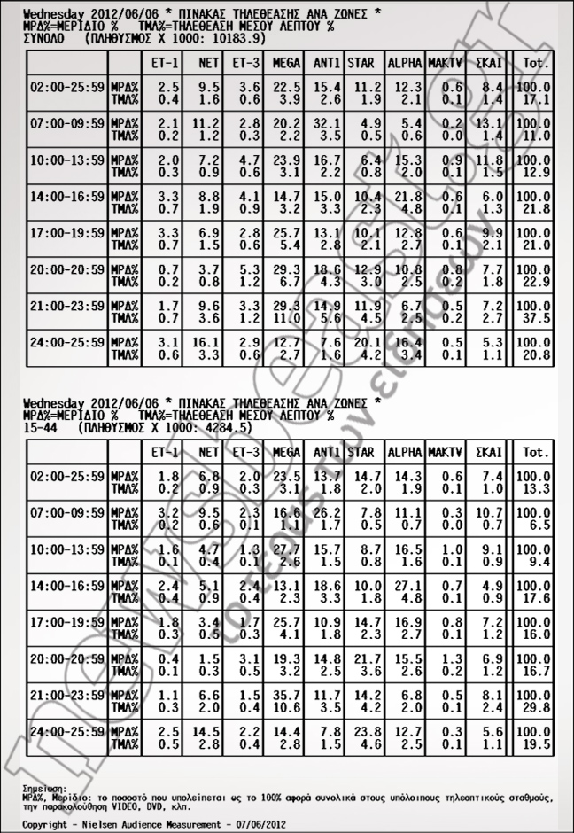 Στην πρώτη θέση της προτίμησης των τηλεθεατών το δελτίο του STAR με 21,7%. Στη δεύτερη θέση το Mega με 19,3% και στην τρίτη ο ΑΝΤ1 με 14,8%.
