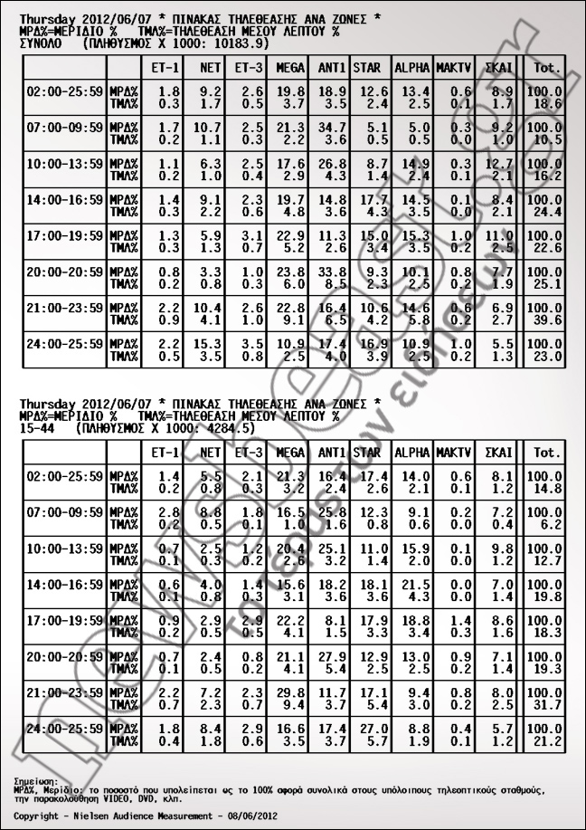 Με 27,9% βγήκε πρώτο το δελτίο του ANT1. Ακολούθησαν Mega με 21,1% και STAR με 12,9%.