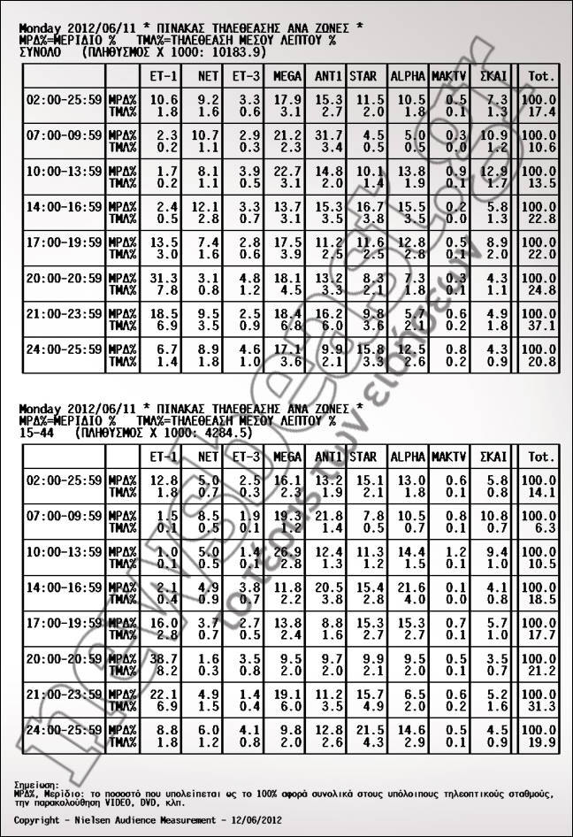 Δείτε πώς διαμορφώθηκε το τηλεοπτικό τοπίο των αγαπημένων σας προγραμμάτων τη Δευτέρα 11 Ιουνίου 2012: