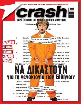 Το Crash κυκλοφορεί στα περίπτερα με αποκαλυπτικά θέματα που θα συζητηθούν. Το περιοδικό… στέλνει στο Διεθνές Ποινικό Δικαστήριο Μέρκελ, Λαγκάρντ, Σόιμπλε, Μπαρόζο και Ρομπάι, απαιτώντας να δικαστούν ως εγκληματίες για τη γενοκτονία των Ελλήνων.