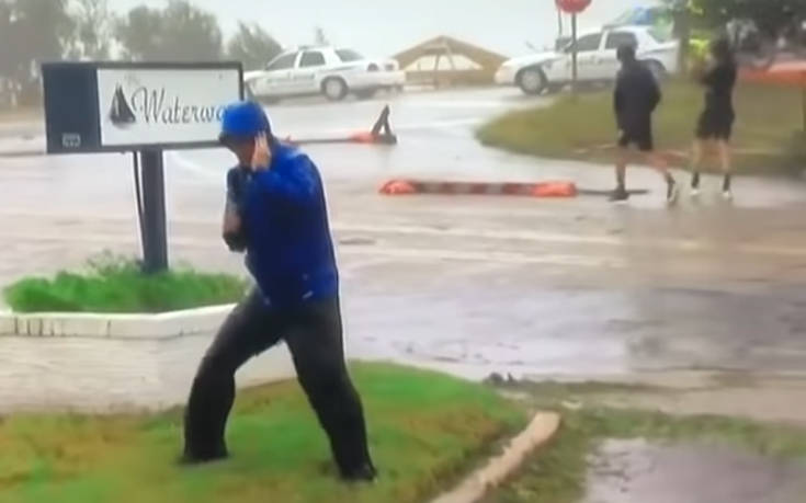Έναν ανεμοδαρμένο ρεπόρτερ να παραδέρνει στους μανιασμένους αέρηδες κατέγραψε η κάμερα, μόνο που τελικά τα πράγματα δεν ήταν ίσως και τόσο φριχτά. Ο λόγος για τον Mike Seidel του σταθμού Weather Channel, ο οποίος ήταν στη Βόρεια Καρολίνα για τον τυφώνα Φλόρενς. Εκεί τον βλέπουμε να παλεύει με τους ανέμους, μαχόμενος με δυνάμεις ανώτερες, όταν δυο περαστικοί από πίσω τού χαλούν το γλυκό!