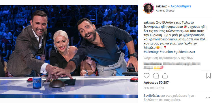 «Θα γίνει του… Γκόλντεν Μπάζερ» υπόσχεται ο Σάκης Τανιμανίδης για το νέο κύκλο του «Ελλάδα έχεις ταλέντο». Το ριάλιτι ταλέντων του ΣΚΑΪ επιστρέφει στις οθόνες μας την ερχόμενη Κυριακή και αν πιστέψουμε τα λεγόμενα του κριτή του παιχνιδιού, από νωρίς φάνηκαν τα μεγάλα τα ταλέντα. Ο Σάκης Τανιμανίδης, η Μαρία Μπακοδήμου και ο Γιώργος Καπουτζίδης κάθονται και πάλι στις θέσεις των κριτών, με σκοπό να ξεχωρίσουν και φέτος το… ταλέντο των ταλέντων, ενώ στην παρουσίαση παραμένει σταθερός ο ταλαντούχος Γιώργος Λιανός. Τα γυρίσματα του παιχνιδιού έχουν ήδη ξεκινήσει και οι κριτές έχουν δει τα πρώτα ταλέντα. Μάλιστα, ο Τανιμανίδης ανέβασε στο λογαριασμό του στο Instagram φωτογραφία από τα παρασκήνια και στη λεζάντα που τη συνόδευσε, δεν έκρυψε τον ενθουσιασμό του για τους υποψήφιους που έχουν περάσει από μπροστά τους.