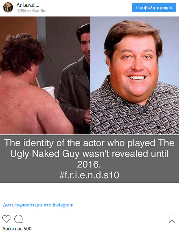 Πολλοί οι χαρακτήρες από τις αγαπημένες μας σειρές οι οποίοι είχαν έναν ξεκάθαρο ρόλο αλλά η πραγματική τους ταυτότητα περιβαλλόταν από ένα πέπλο μυστηρίου. Χαρακτηριστικό παράδειγμα ο άνδρας που οι πρωταγωνιστές από τα «Φιλαράκια» λάτρευαν να κρυφοκοιτάζουν και να ενοχλούν. Ο πασίγνωστος σε όλους «Ugly Naked Guy». Μία φιγούρα, η οποία ποτέ δεν εμφανίστηκε κανονικά στην σειρά και τον φανταζόμασταν από τις ηδονοβλεπτικές περιγραφές των ηθοποιών. Για να είμαστε πιο ακριβείς εμφανίστηκε δύο φορές. Τη μία η γυμνή κοιλιά του και την άλλη η γυμνή πλάτη του μπροστά στον Ρος.