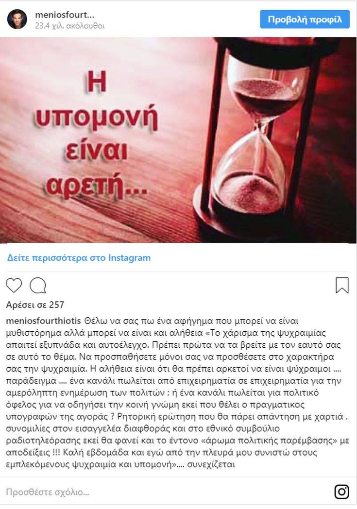 Ο Μένιος Φουρθιώτης αποτελεί παρελθόν για το Open μετά την ανακοίνωση της οριστικής διακοπής της συνεργασίας από το κανάλι.