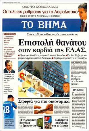 Κυριαρχούν το ωμό τρομοκρατικό χτύπημα στο υπουργείο Προστασίας του Πολίτη και ο τραγικός θάνατος του Γ. Βασιλάκη, το ασφαλιστικό και οι αντιδράσεις για τις περικοπές της 13ης και 14ης σύνταξης, οι προσπάθειες της κυβέρνησης για την πάταξη της φοροδιαφυγής, η έναρξη του 8ου συνεδρίου της Νέας Δημοκρατίας, καθώς και οι πιέσεις από Βρυξέλλες για την εξυγίανση στο χώρο της Υγείας στη χώρα μας και οι πολιτικές παρεμβάσεις για συγχωνεύσεις τραπεζών.