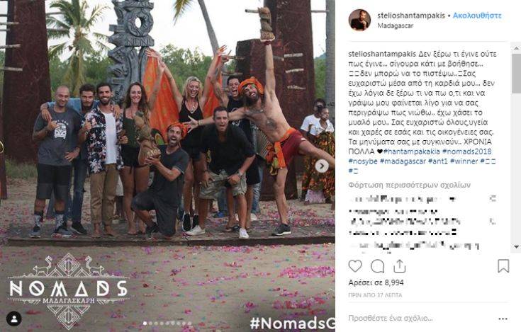 Εμφανώς συγκινημένος από τη νίκη του στο Nomads ήταν ο Στέλιος Χανταμπάκης στο πρώτο του μήνυμα στο Instagram μετά τον τελικό της Κυριακής.