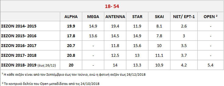 - Σεζόν 2018-2019: 23,3% (σύνολο κοινού)