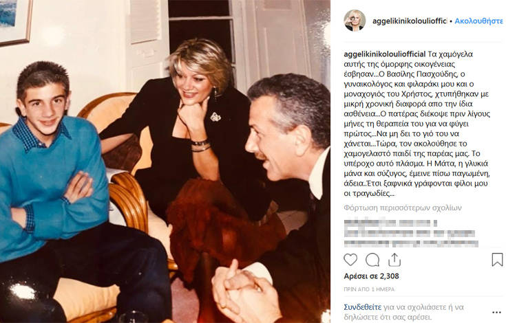 «Τα χαμόγελα αυτής της όμορφης οικογένειας έσβησαν… Ο Βασίλης Πασχούδης, ο γυναικολόγος και φιλαράκι μου και ο μοναχογιός του Χρήστος, χτυπήθηκαν με μικρή χρονική διαφορά από την ίδια ασθένεια… Ο πατέρας διέκοψε πριν λίγους μήνες τη θεραπεία του για να φύγει πρώτος… Να μη δει τον γιο του να χάνεται… Τώρα, τον ακολούθησε το χαμογελαστό παιδί της παρέας μας. Το υπέροχο αυτό πλάσμα. Η Μάτα, η γλυκιά μάνα και σύζυγος, έμεινε πίσω παγωμένη, άδεια… Έτσι ξαφνικά γράφονται φίλοι μου οι τραγωδίες…».
