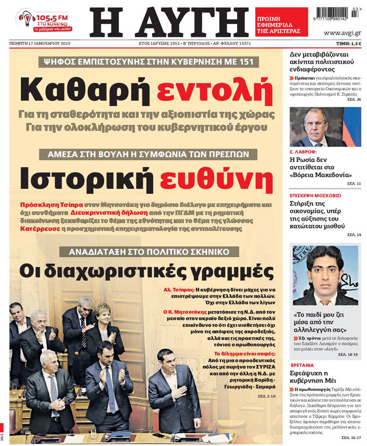 Η ΑΥΓΗ: «Καθαρή εντολή Ιστορική ευθύνη»