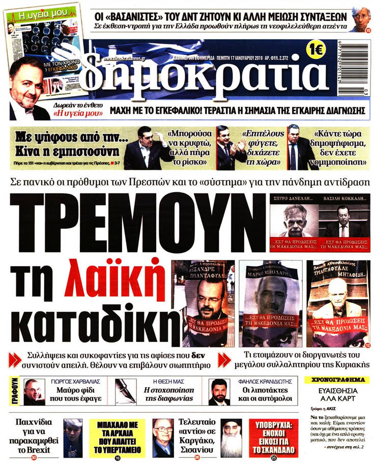 Δείτε εδώ όλα τα πρωτοσέλιδα των εφημερίδων