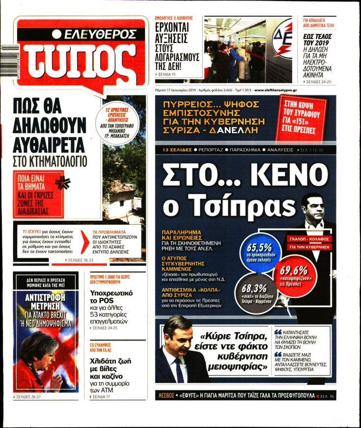 ΕΛΕΥΘΕΡΟΣ ΤΥΠΟΣ: «Στο… κενό ο Τσίπρας»