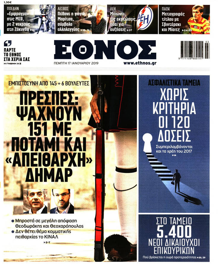 ΕΘΝΟΣ: «Πρέσπες: ψάχνουν 151 με ΠΟΤΑΜΙ και “απείθαρχη” ΔΗΜΑΡ»