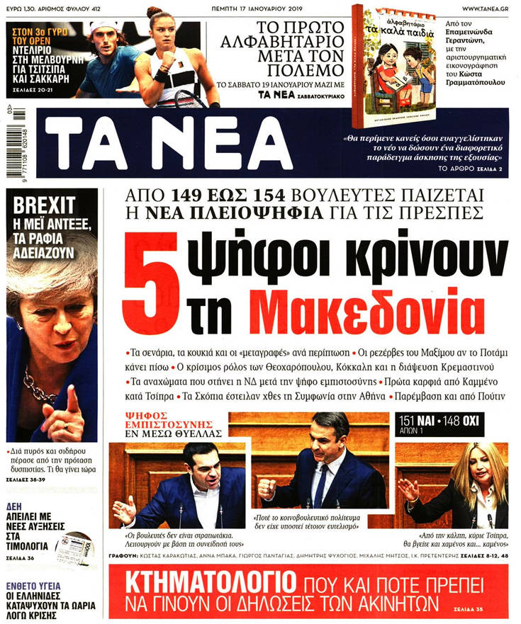 ΤΑ ΝΕΑ: «5 ψήφοι κρίνουν τη Μακεδονία»