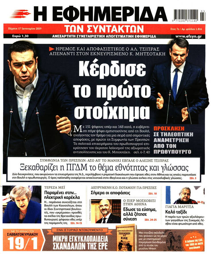Η ΕΦΗΜΕΡΙΔΑ ΤΩΝ ΣΥΝΤΑΚΤΩΝ: «Κέρδισε το πρώτο στοίχημα»