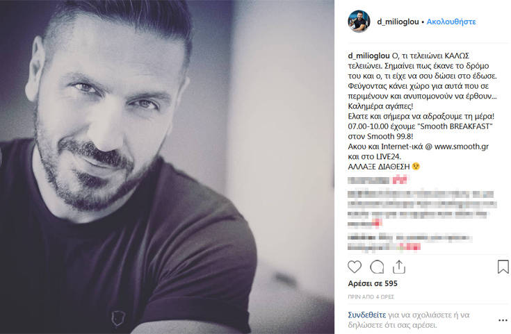 Την ίδια στιγμή, ο συνεργάτης της Σάσας Σταμάτη, Δημήτρης Μηλιόγλου ανέβασε το δικό του μήνυμα, για όσα «τελειώνουν».