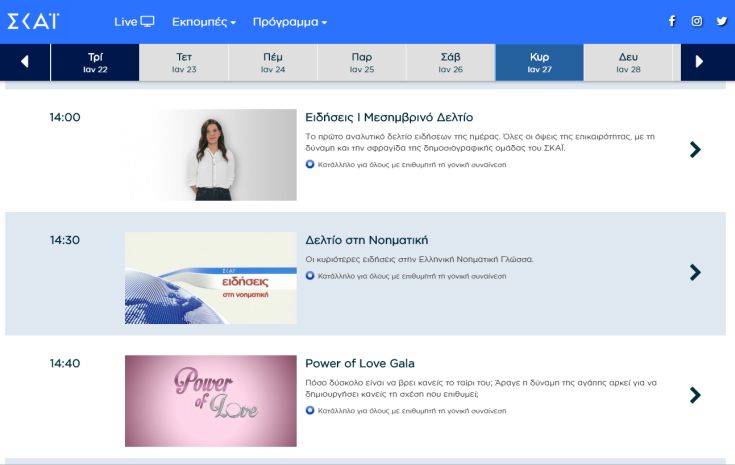 Στη σελίδα του skai.gr έχει γίνει ήδη η αλλαγή στο πρόγραμμα και την Κυριακή 27/1 στη θέση του Ooh La La! φιγουράρει το Power of love.