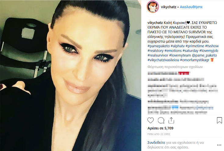 «Καλή Κυριακή. ΣΑΣ ΕΥΧΑΡΙΣΤΏ ΘΕΡΜΑ ΠΟΥ ΑΝΑΔΕΙΞΑΤΕ ΕΧΘΕΣ ΤΟ ΠΑΚΕΤΟ ΩΣ ΤΟ ΜΕΓΆΛΟ SURVIVOR της ελληνικής τηλεόρασης! Πραγματικά σας ευχαριστώ μέσα από την καρδιά μου», έγραψε χαρακτηριστικά.