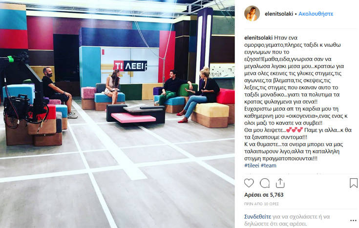 «Ήταν ένα όμορφο, γεμάτο, πλήρες ταξίδι κ νιώθω ευγνώμων που το έζησα!!Έμαθα, είδα,γνώρισα σαν να μεγάλωσα λιγάκι μέσα μου…κρατάω για μένα όλες εκείνες τις γλυκές στιγμές,τις αγωνίες, τα βλέμματα,τις σκέψεις,τις λέξεις,τις στιγμές που έκαναν αυτό το ταξίδι μοναδικό…γιατί τα πολύτιμα τα κρατάς φυλαγμένα για σένα!!