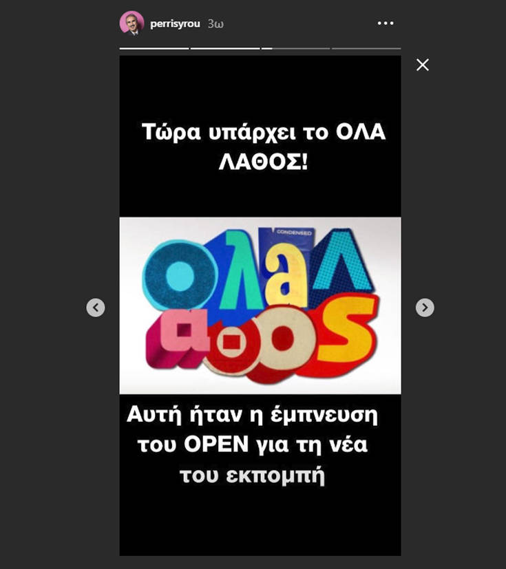 Και συνεχίζει με δεύτερη ανάρτηση: «Τώρα υπάρχει το Όλα λάθος. Αυτή ήταν η έμπνευση του OPEN για τη νέα του εκπομπή».