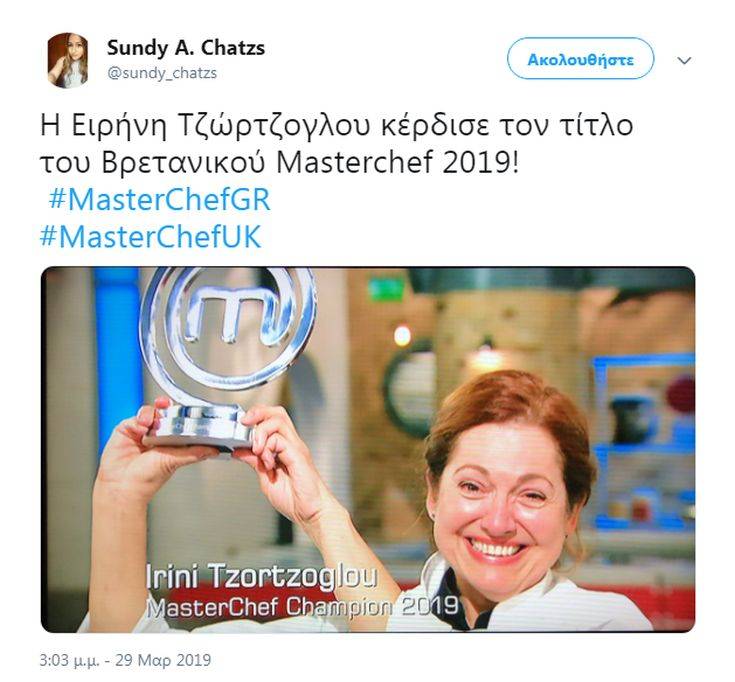 Μια Ελληνίδα αναδείχθηκε νικήτρια του Master Chef στη Βρετανία, μετά από έναν τελικό όπου αντιμετώπισε δύο άλλες γυναίκες ερασιτέχνες της μαγειρικής.