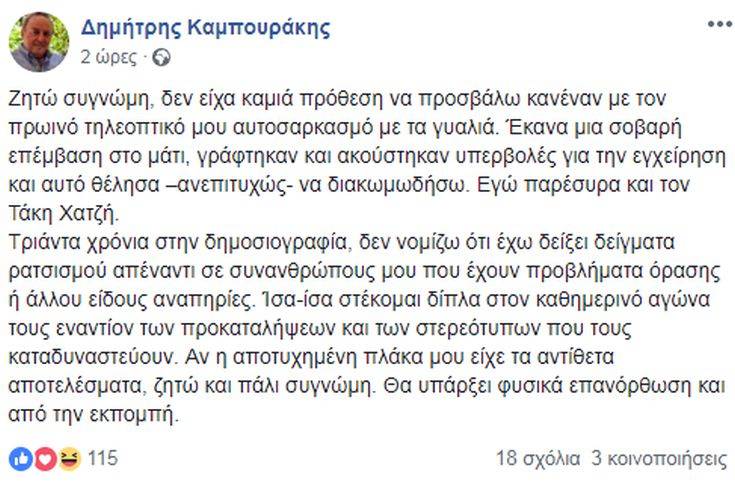 Από την πλευρά του ο Τάκης Χατζής ζήτησε ειλικρινή συγγνώμη: