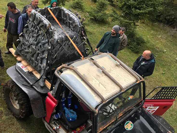 Η κατασκευή πήρε σάρκα και οστά στις 10 Απριλίου 2019. Για τη μεταφορά του στα 1.260 μέτρα υψόμετρο, στην άκρη ενός χωραφιού, επιστρατεύτηκε ένα αγωνιστικό off road όχημα 4Χ4, ένας θαρραλέος οδηγός και πολλά χέρια προκειμένου να σηκώσουν την 700 κιλών κατασκευή.