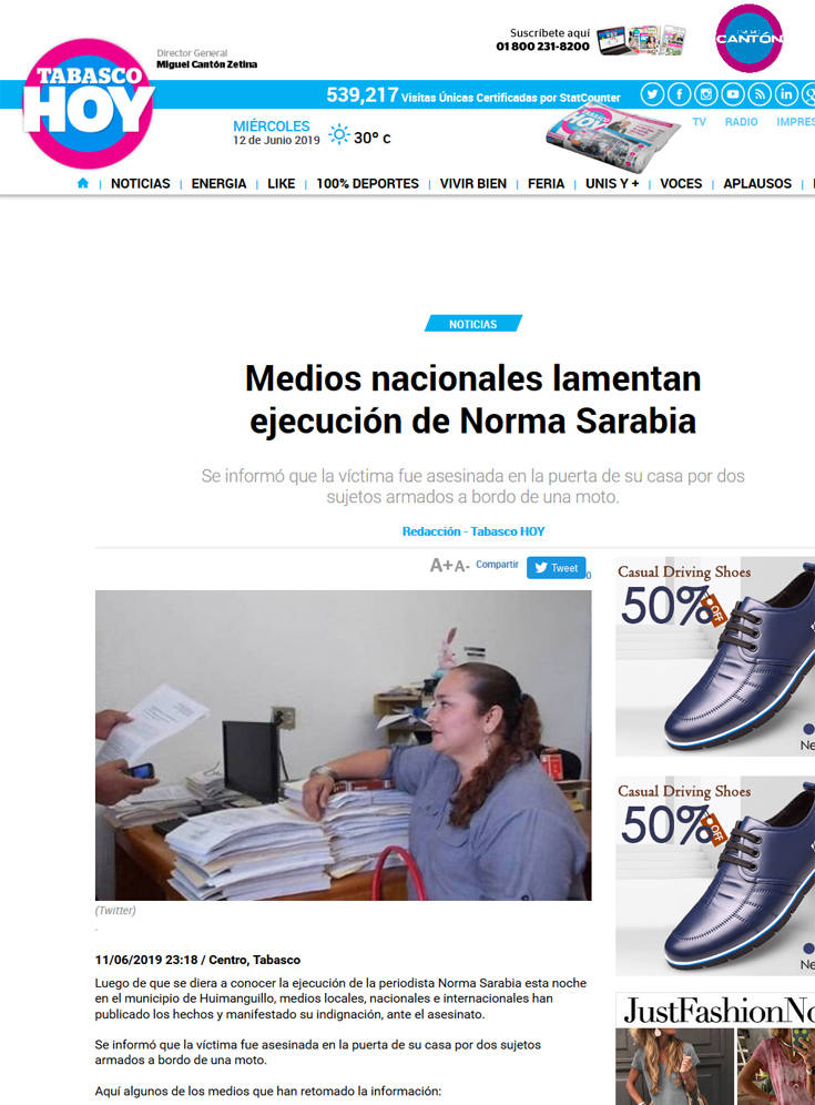 Η Σαράμπια ήταν ανταποκρίτρια της Tabasco Hoy για 15 χρόνια και εργαζόταν εδώ και κάποια χρόνια για άλλα τοπικά ΜΜΕ, ανέφερε η εφημερίδα στην ηλεκτρονική της έκδοση.