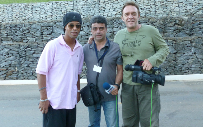Ο Ροναλντίνιο, ο παρουσιαστής του «Bossa Nova» κ. Γιώργος Λυκουρόπουλος και ο κινηματογραφιστής κ. Σταύρος Παπουτσάς.
