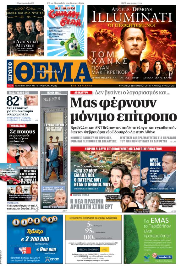 Μην χάσετε αύριο το «Πρώτο θέμα» το οποίο περιλαμβάνει το dvd της ταινίας «Illuminati» με τους Τομ Χανκς, Γιούαν Μακ Γκρέγκορ, το 2ο cd με την αυθεντική μουσική από τη σειρά «Χίλιες και μία νύχτες» και ένα cd με όλα τα hits του Gummy Bear!