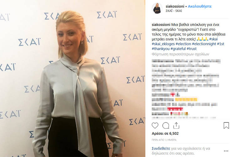 Το δικό της «ευχαριστώ», μέσω του προσωπικού της λογαριασμού στο Instagram, θέλησε να πει η Σία Κοσιώνη στο κοινό που βρέθηκε «δίπλα» της, την ημέρα τον εκλογών.
