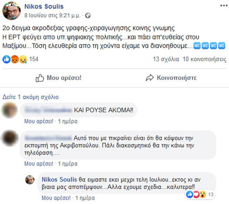 Νωρίτερα ωστόσο ο σκηνοθέτης της εκπομπής είχε αναφερθεί στο Twitter στη νέα κυβέρνηση και όσα ακούγονται για την ΕΡΤ.