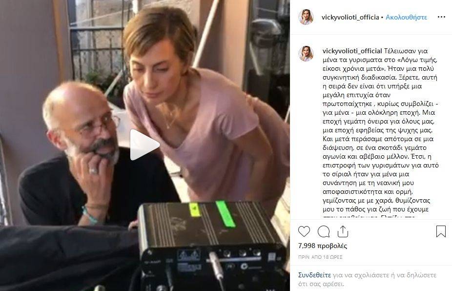 Με ένα συγκινητικό μήνυμα και με ένα στιγμιότυπο, μέσω του προσωπικού της λογαριασμού στο Instagram, η Βίκυ Βολιώτη αποκάλυψε ότι ολοκληρώθηκε η συμμετοχή της στον καινούργιο κύκλο γυρισμάτων της δραματικής σειράς «Λόγω Τιμής», που θα προβληθεί το φθινόπωρο στον τηλεοπτικό σταθμό ΣΚΑΪ.