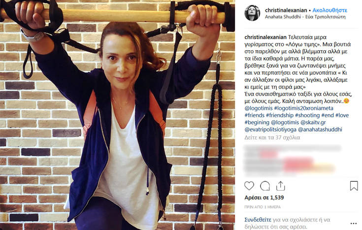 «Τελευταία μέρα γυρίσματος στο “Λόγω Τιμής”. Μια βουτιά στο παρελθόν με αλλά βλέμματα αλλά με τα ίδια καθαρά μάτια. Η παρέα μας, βρέθηκε ξανά για να ζωντανέψει μνήμες και να περπατήσει σε νέα μονοπάτια “Κι αν άλλαξαν οι φίλοι μας λιγάκι, αλλάξαμε κι εμείς με τη σειρά μας”. Ένα συναισθηματικό ταξίδι για όλους εσάς, με όλους εμάς. Καλή αντάμωση λοιπόν…», έγραψε η ηθοποιός.