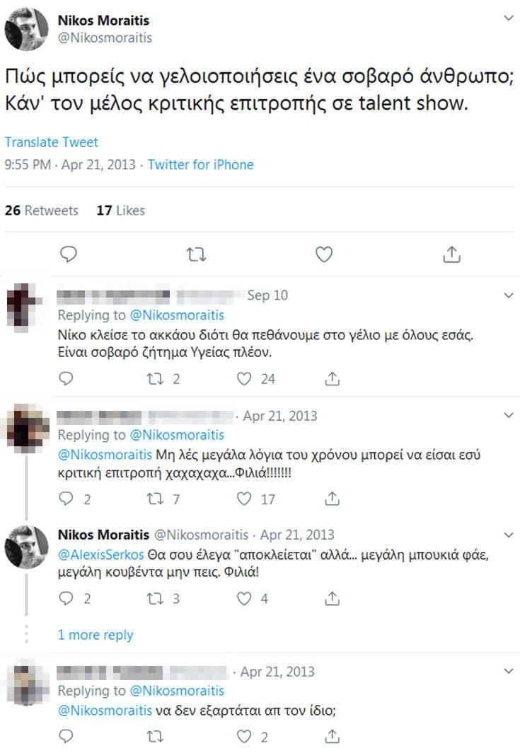 Για τους χρήστες, όμως, του Twitter η ανακοίνωση του ονόματός του προκάλεσε ακόμη μεγαλύτερη έκπληξη. Κι αυτό διότι ο Νίκος Μωραΐτης στο παρελθόν είχε καταφερθεί εναντίον των talent shows, αλλά και του ΑΝΤ1 ειδικότερα.