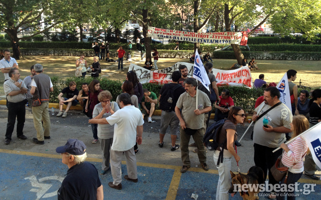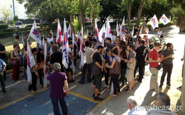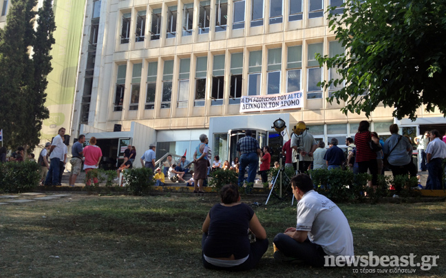 Ήδη, έξω από το Ραδιομέγαρο βρίσκονται μέλη του ΠΑΜΕ, ενώ έξω από την κεντρική πύλη είναι σταθμευμένα δύο βανάκια της ΕΡΤ.