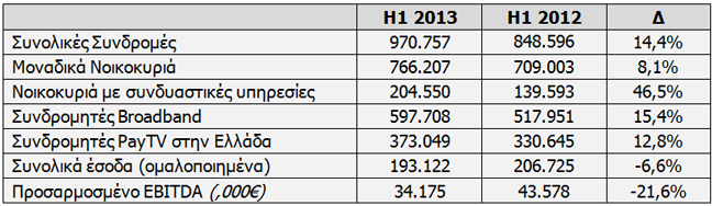Κατά το 1ο εξάμηνο του 2013, η συνδρομητική βάση στις τηλεπικοινωνιακές υπηρεσίες αυξήθηκε κατά 15,4% σε σχέση με το αντίστοιχο περυσινό διάστημα, ξεπερνώντας τους 597 χιλ. συνδρομητές. Στο 1ο εξάμηνο του 2013, το μερίδιο στους νέους συνδρομητές LLU ανήλθε στο 36,8%, επιβεβαιώνοντας την απήχηση των εμπορικών πρωτοβουλιών σε επίπεδο συνδυαστικών υπηρεσιών.