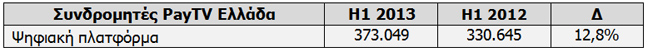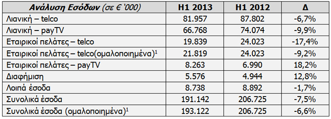 Παρά το γεγονός ότι οι καθαρές νέες συνδέσεις, το 1ο εξάμηνο του 2013 έφτασαν τις 24 χιλ., αυξημένες κατά πολύ σε σχέση με τις -10 χιλ. του αντίστοιχου 1ου εξαμήνου του 2012, η επίπτωση των αυξημένων νέων συνδρομητών δεν αποτυπώνεται πλήρως στα έσοδα του 1ου εξαμήνου του 2013.