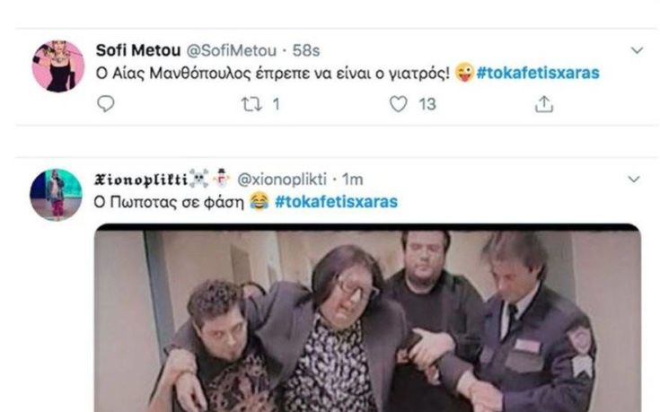 Πρωταγωνιστικό ρόλο είχε στο Twitter το 4ο επεισόδιο του «Καφέ της Χαράς», με το εγκεφαλικό του Περίανδρου Πώπωτα να φέρνει θύμισες από το «Κωνσταντίνου κι Ελένης».