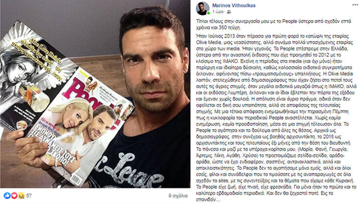 To People δεν το αγαπήσαμε μόνο εμείς, αλλά και όλοι εσείς, φίλοι και συνάδελφοι που το τιμούσατε με τις αναπαραγωγές σε όλα σχεδόν τα sites, με τις συνεντεύξεις και τα θέματα που είχαμε κάθε Κυριακή. Το People είχε ζωή, είχε πνοή, είχε φρεσκάδα. Για μένα ήταν το πρώτο και το καλύτερο εβδομαδιαίο περιοδικό. Και δεν θα ξεχαστεί ποτέ. Εις το επανιδείν…» έγραψε ο κ. Βυθούλκας.