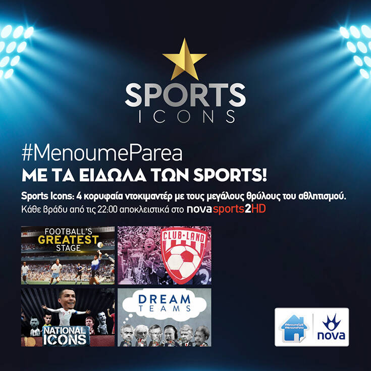 Αθλητικοί αστέρες παρελαύνουν καθημερινά τόσο μέσα από τις μοναδικές παραγωγές των καναλιών Novasports αλλά και από τις τέσσερις νέες σειρές της ζώνης «Sports Icons». Παρακολουθείστε κορυφαίες μορφές του αθλητισμού μέσα από προσωπογραφίες, αφηγήσεις, ιστορικές στιγμές και φάσεις. Πολλά γκολ και αμέτρητα καλάθια ακολουθούν στο επόμενο διάστημα μέσα από τα αθλητικά κανάλια της Nova!