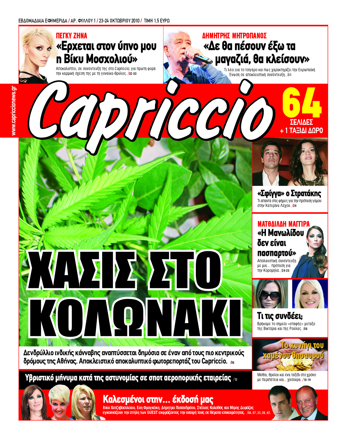 Η νέα εκδοτική προσπάθεια, το Capriccio, καλύπτει μέσα σε 64 σελίδες ρεπορτάζ από το καλλιτεχνικό στερέωμα, το χώρο των media, τα αθλητικά δρώμενα και ειδήσεις που αφορούν όλους μας.