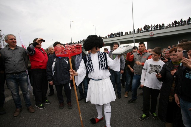Στο παλλαϊκό αγροτικό συλλαλητήριο που πραγματοποιήθηκε την Κυριακή το μεσημέρι στον κόμβο της Νίκαιας, εκτός από αγρότες, πολίτες και εκπροσώπους φορέων, το «παρών» έδωσε και ένας… τσολιάς!