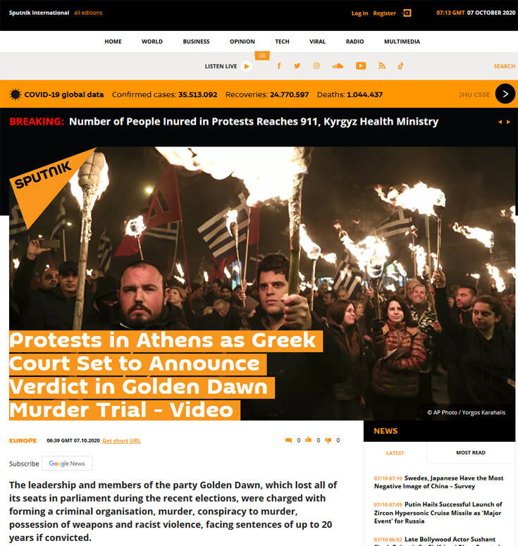 Τα μεγαλύτερα ειδησεογραφικά πρακτορεία κάνουν αναφορές στην δίκη της Χρυσής Αυγής που αναμένεται η απόφαση του δικαστηρίου.