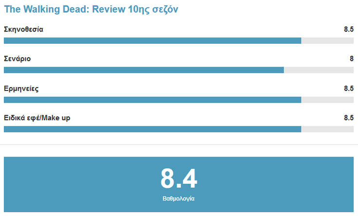 Κατά γενική ομολογία όμως, το The Walking Dead μετά από δύο-τρεις μέτριες σεζόν, έχει «αναστηθεί» και βαδίζει προς την 11η και τελευταία σεζόν με πολύ γερές βάσεις.