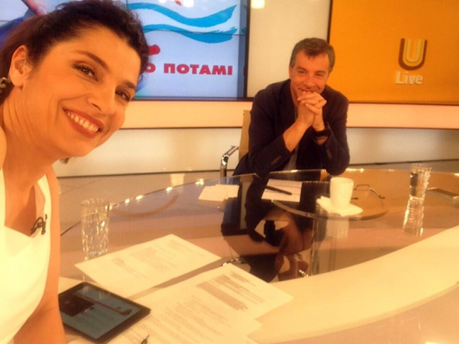 Καλεσμένος στην εκπομπή της Πόπης Τσαπανίδου ήταν ο Σταύρος Θεοδωράκης και η γνωστή δημοσιογράφος ανέβασε μια selfie φωτογραφία τους στο twitter.