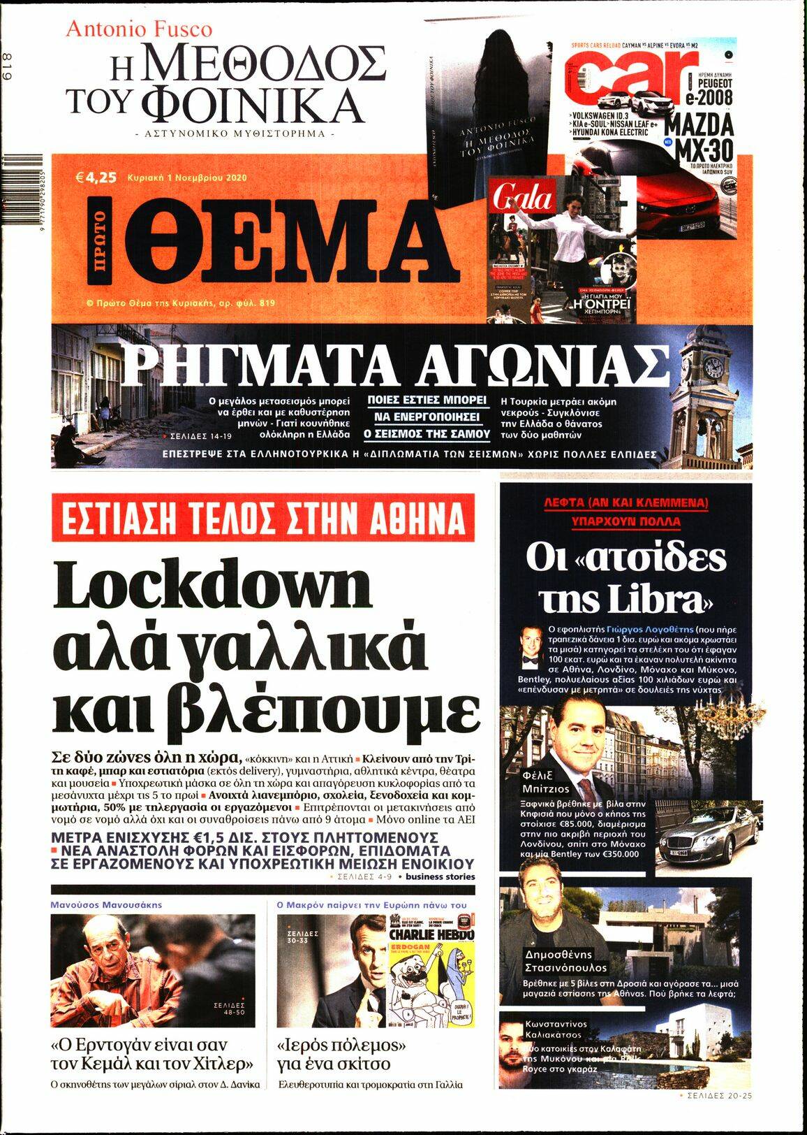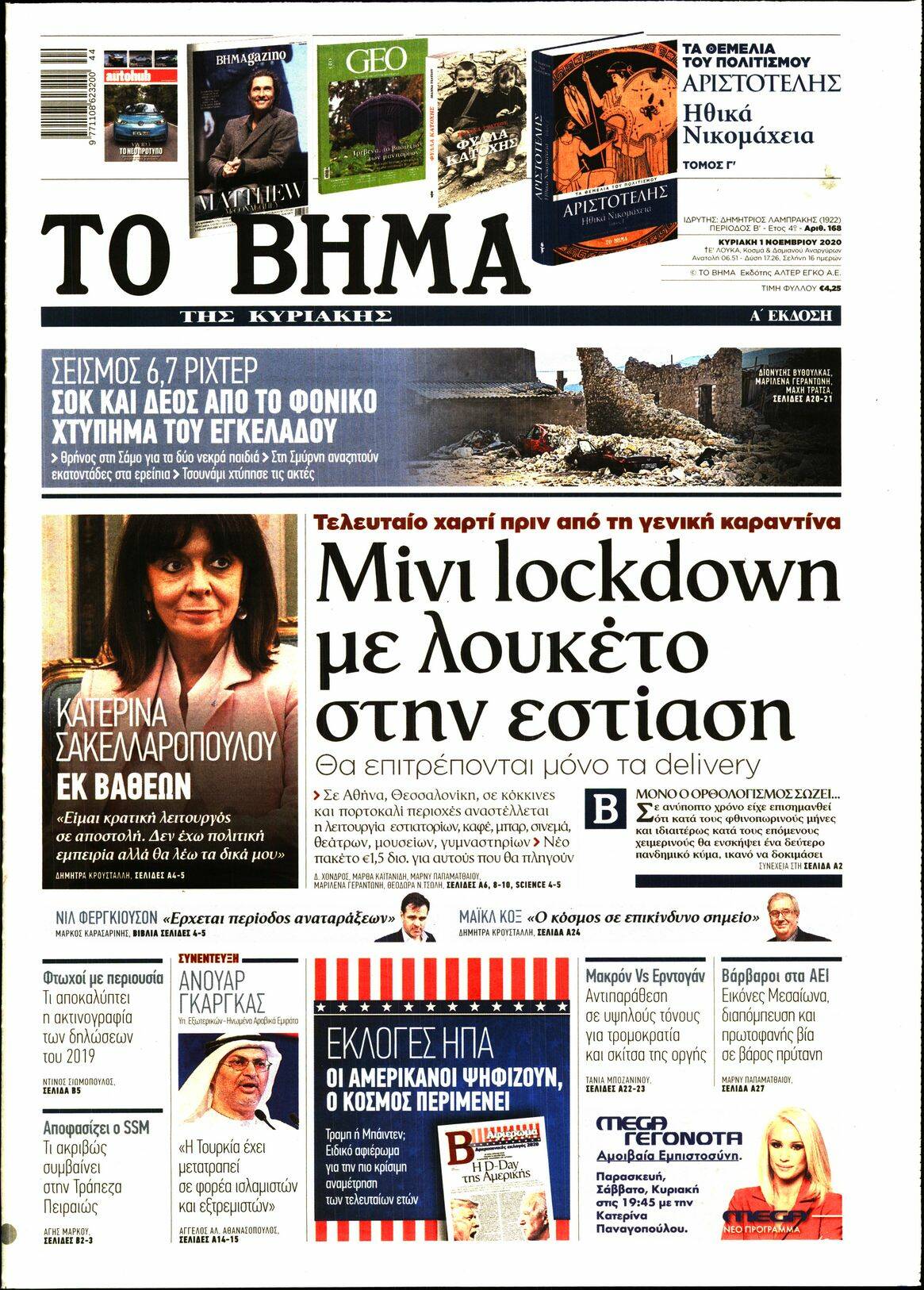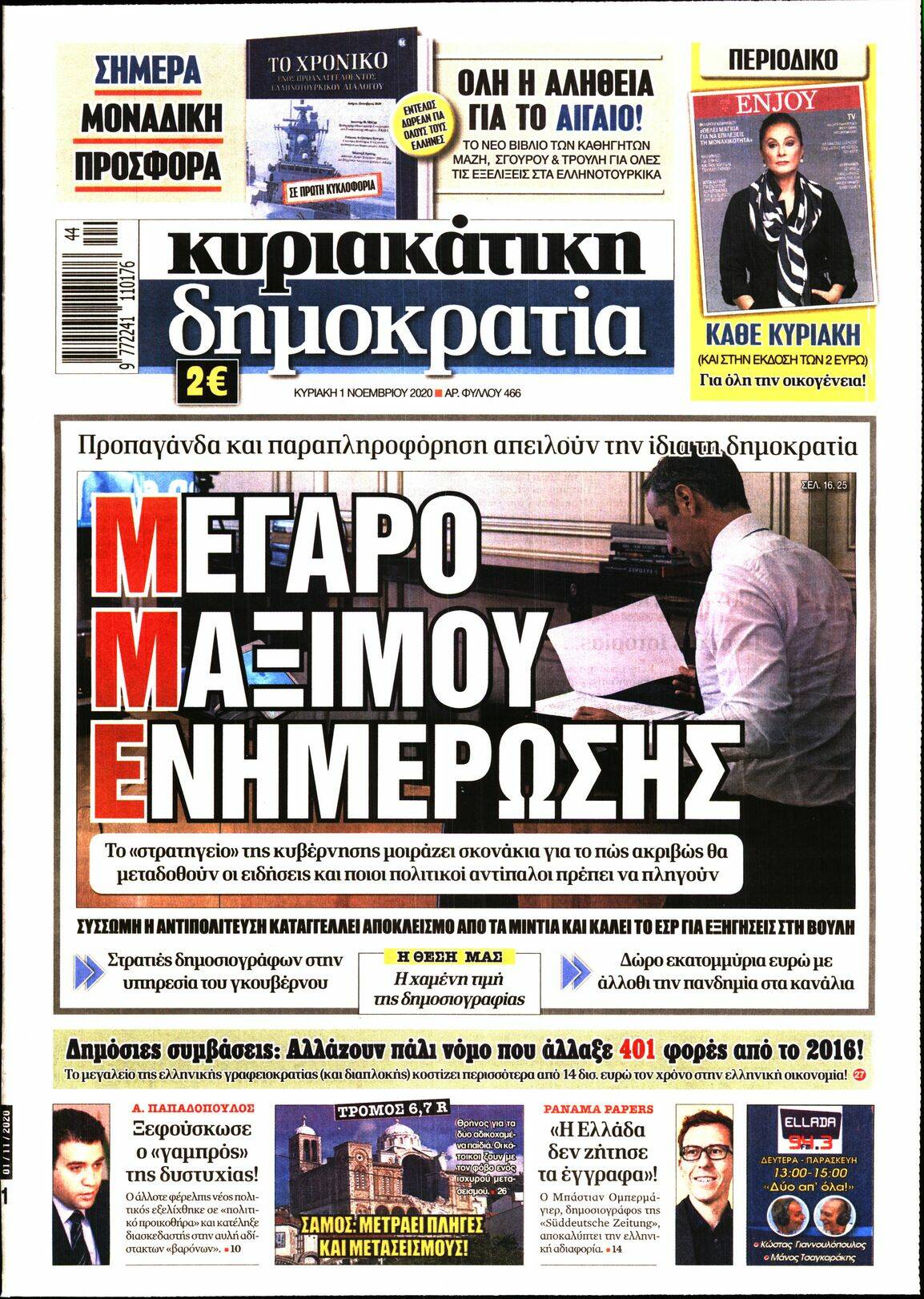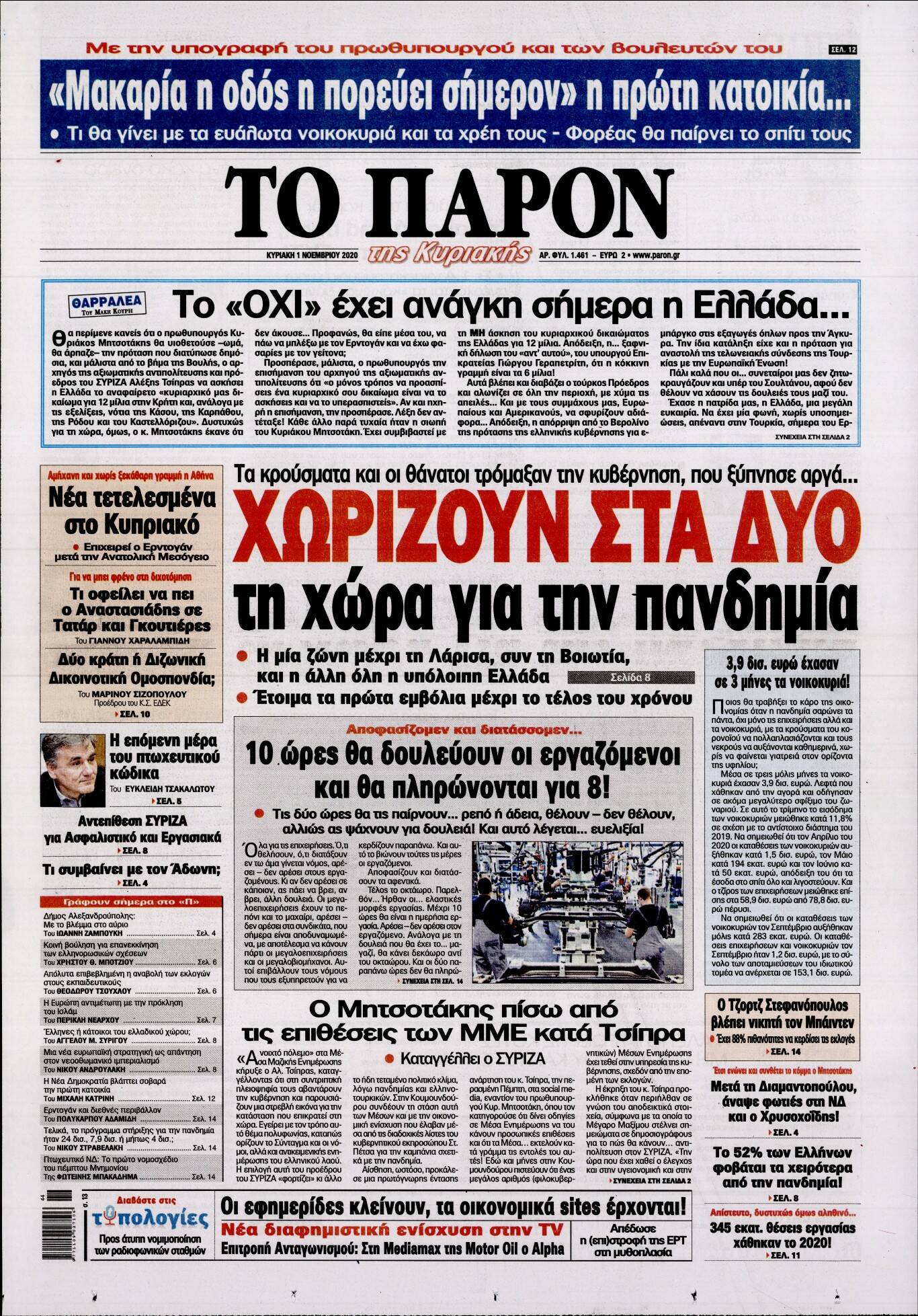 Η πορεία του κορονοϊού στην χώρα και τα νέα μέτρα που ανακοίνωσε ο πρωθυπουργός ξεχωρίζουν μεταξύ άλλων στα πρωτοσέλιδα των κυριακάτικων εφημερίδων.